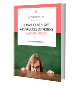 2. Prendre rendez-vous avec l’enseignant(e) pour expliquer les difficultés rencontrées. Si vous n’êtes pas très à l’aise sur la méthode de dialogue avec l’enseignant, je vous invite à jeter un oeil à mon guide « Réussissez le dialogue parents-profs en 3 étapes simples et incontournables » qui est là pour ça 😉